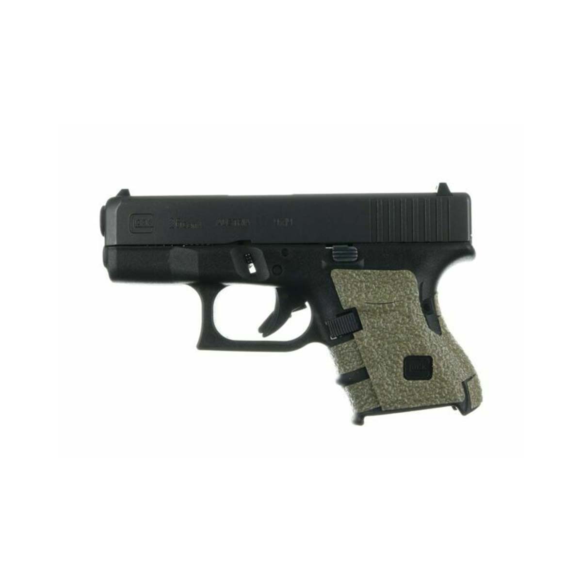 Grip caoutchouc sable pour Glock 26, 27, 28, 33, 39 (gen 4) large backstrap offrant une meilleure préhension en situation tactique ou pour le tir sportif. Le grip enserre complètement la poignée de l'arme mais laisse apparent le logo Glock. Le grip caoutchouc améliore le confort de la poignée pistolet, sans avoir une surface abrasive rendant son utilisation agréable et idéale pour un port discret ou avec un holster inside.