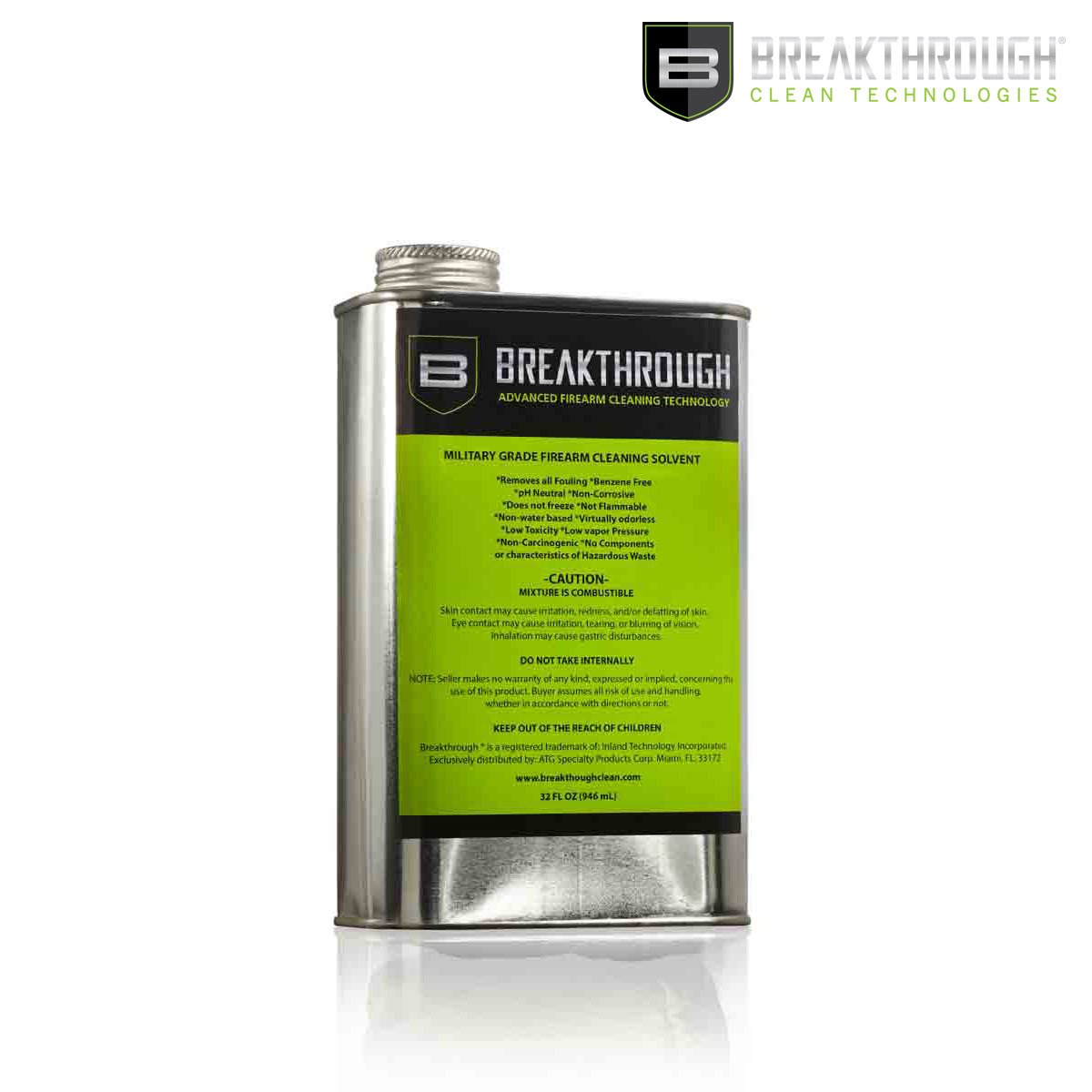 - Le solvant qualité militaire Breakthrough® est inodore, non colorant, élimine totalement l’encrassement, et s'évapore complètement, ne laissant aucun résidu. Son pH est totalement neutre, ce qui n’engendre aucun dégât sur les parties bois, métal, plastique, polymère, cerakote ou water-transfert de votre arme à feu. De plus, contrairement à des solvants classiques, le solvant qualité militaire Breakthrough possède un point d’ignition de 65° C et est donc considéré comme ininflammable. L’efficacité du solvant Breakthrough est inégalée, réduisant de façon drastique la durée du nettoyage tout en consommant moins de produit.